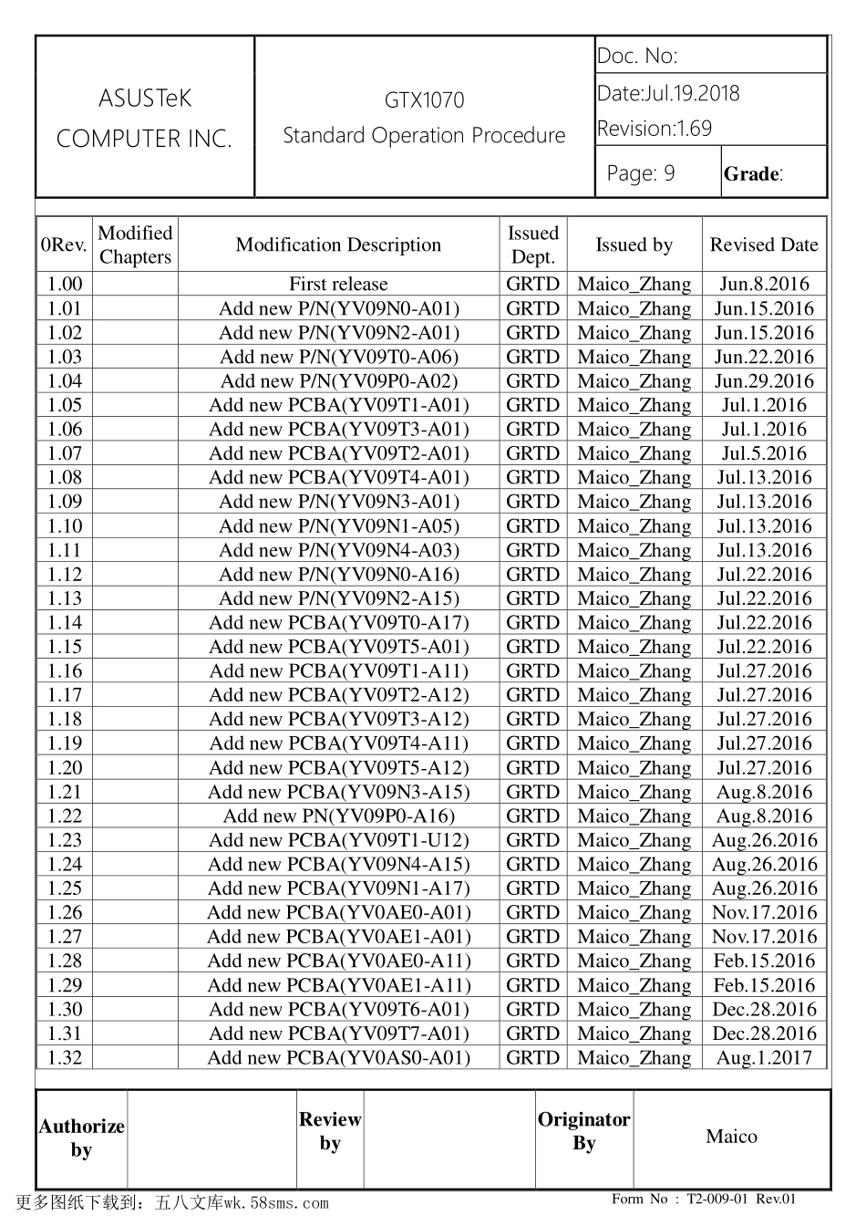 ASUSTeKCOMPUTERINC.GTX1070StandardOperationProcedureDoc.No:Date:Jul.19.2018Revision:1.69Page:9Grade:AuthorizebyReviewbyOriginatorByMaicoFormNo:T2-009-01Rev.010Rev.ModifiedChaptersModificationDescri...