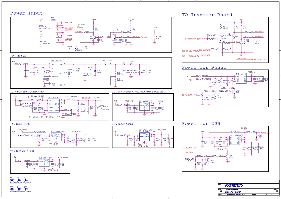 5544332211DDCCBBAAHIGHNORMALLOWSTANDBYVout=0.8*_R1+R2_/R21000mATOInverterBoard3.3VPower_StandbyonlyforAVDD_MPLLandIRSOT-223SOT-2233.3VPower_Normal1.5VPower_DDR3PowerforPanel1.26VFOR6i78COREPOWER2.5...