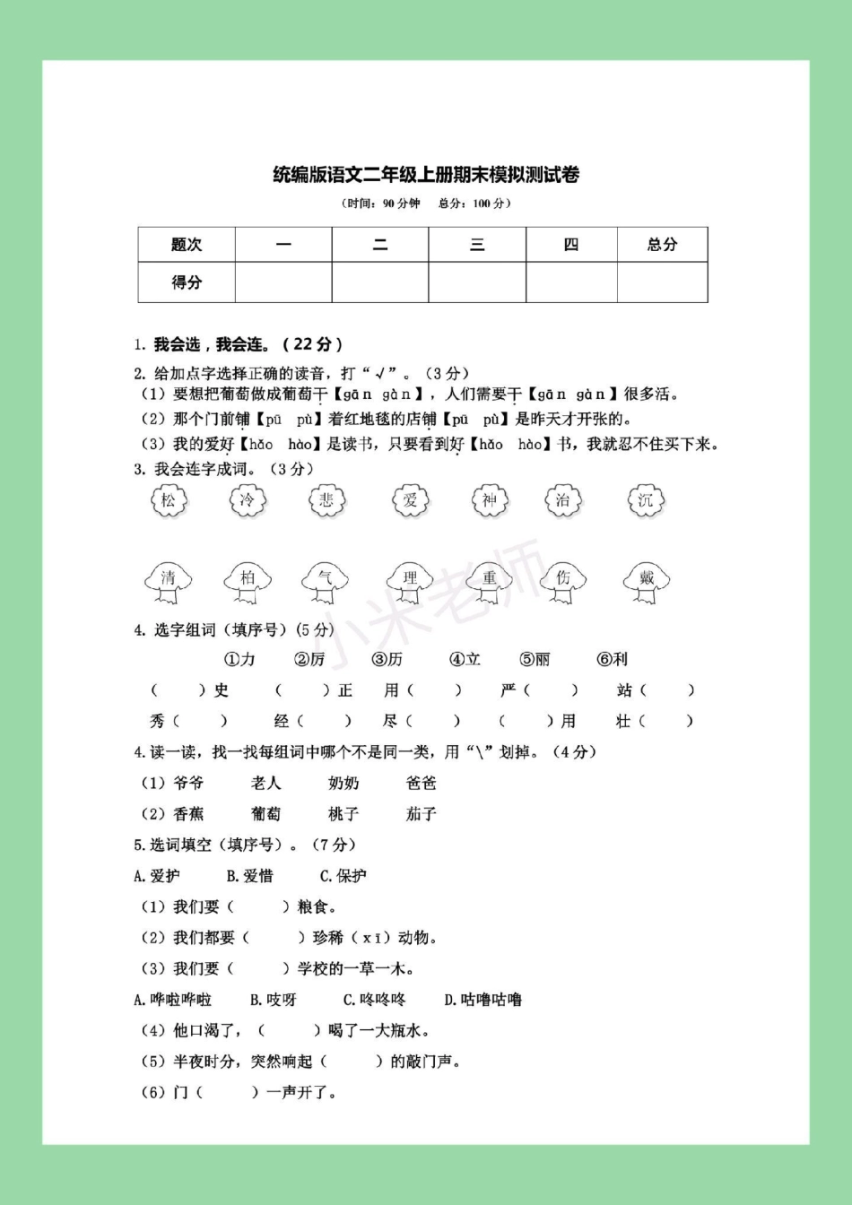 必考考点 二年级语文期末考试  家长为孩子保存练习可打印.pdf_第1页