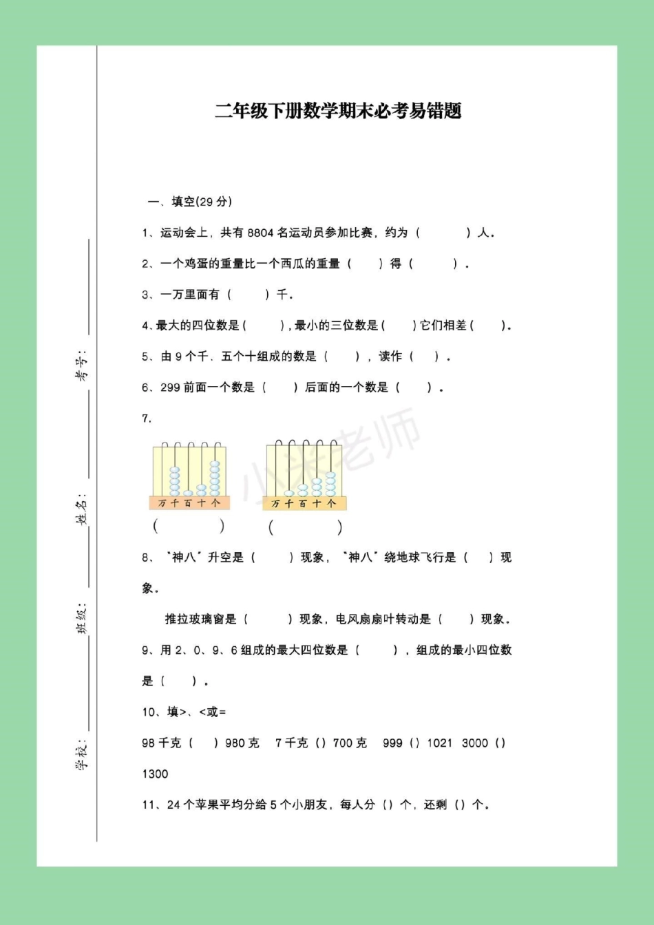 必考考点 期末必考 二年级下册数学.pdf_第2页