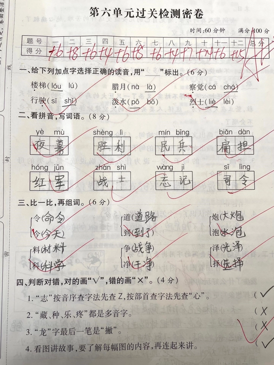 二年级《第六单元测试》知识分享 二年级 教育 干货 干货分享.pdf