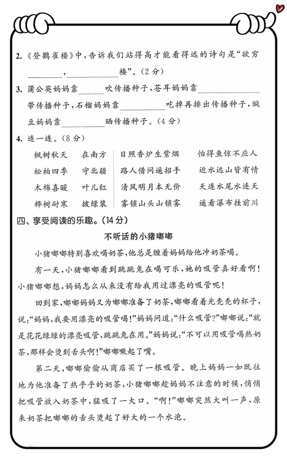 二年级上册语文期中测试卷2套(附答案).pdf_第3页