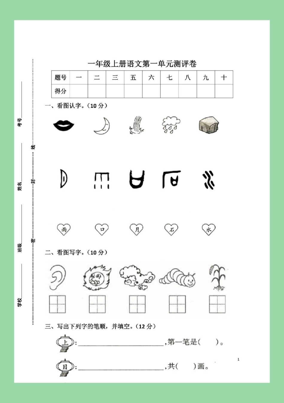 每天学习一点点 必考考点 一年级语文 家长为孩子保存练习可打印.pdf