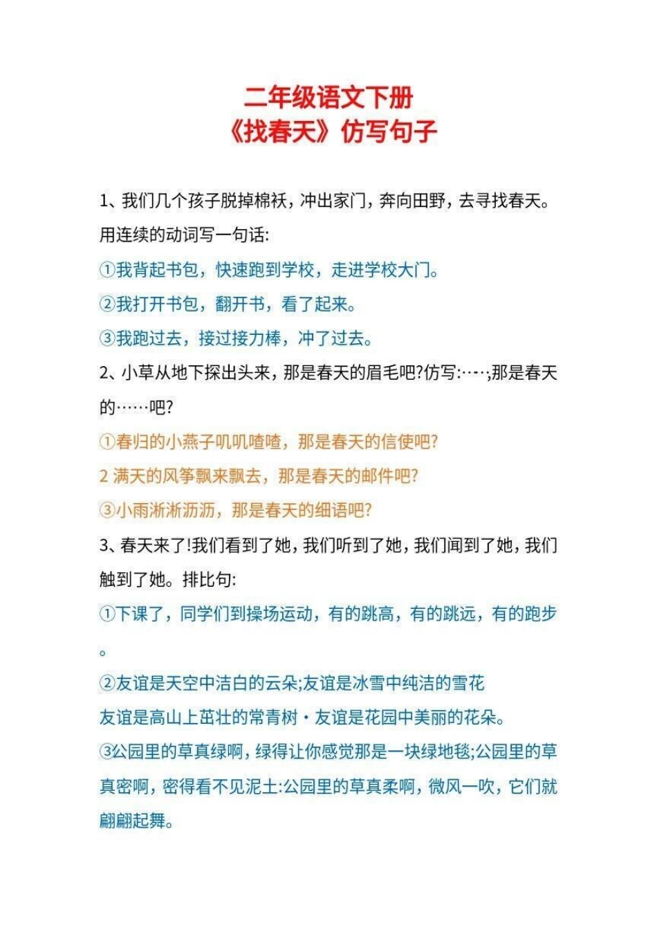 二年级下册语文课内仿写句子和课文续写 教育 学习 二年级语文.pdf