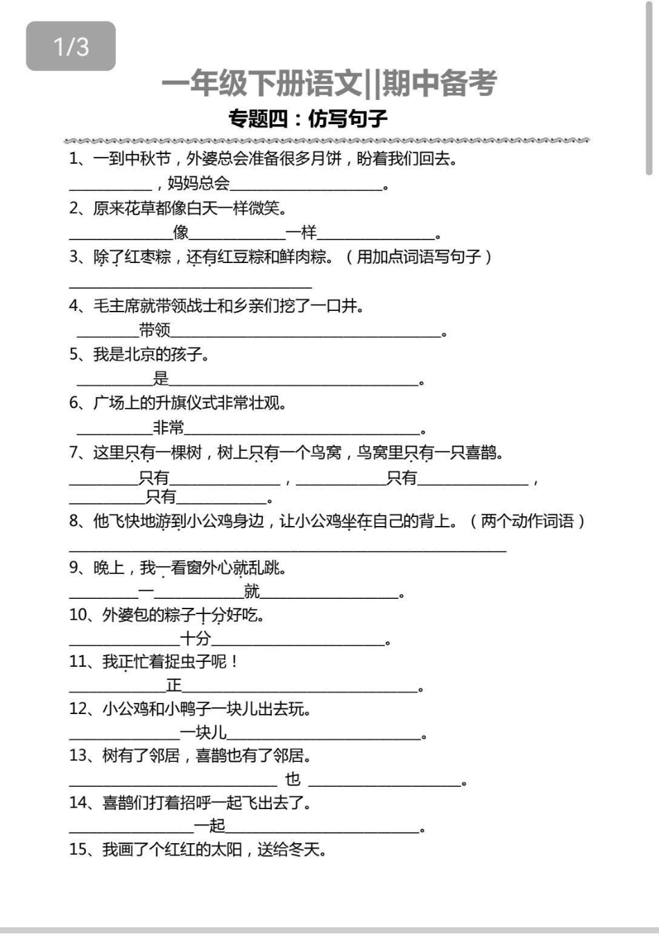 一年级期中备考专项汇总。期中备考词语搭配,仿写句子来啦!一年级 语文 知识分享 学习 仿写句子.pdf_第3页