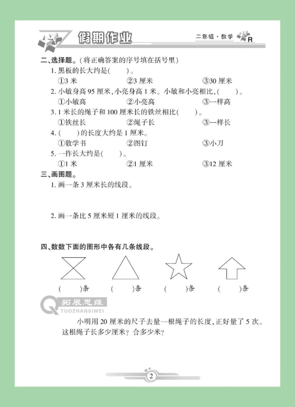 小学数学 二年级数学寒假作业 家长为孩子保存练习可打印.pdf_第2页