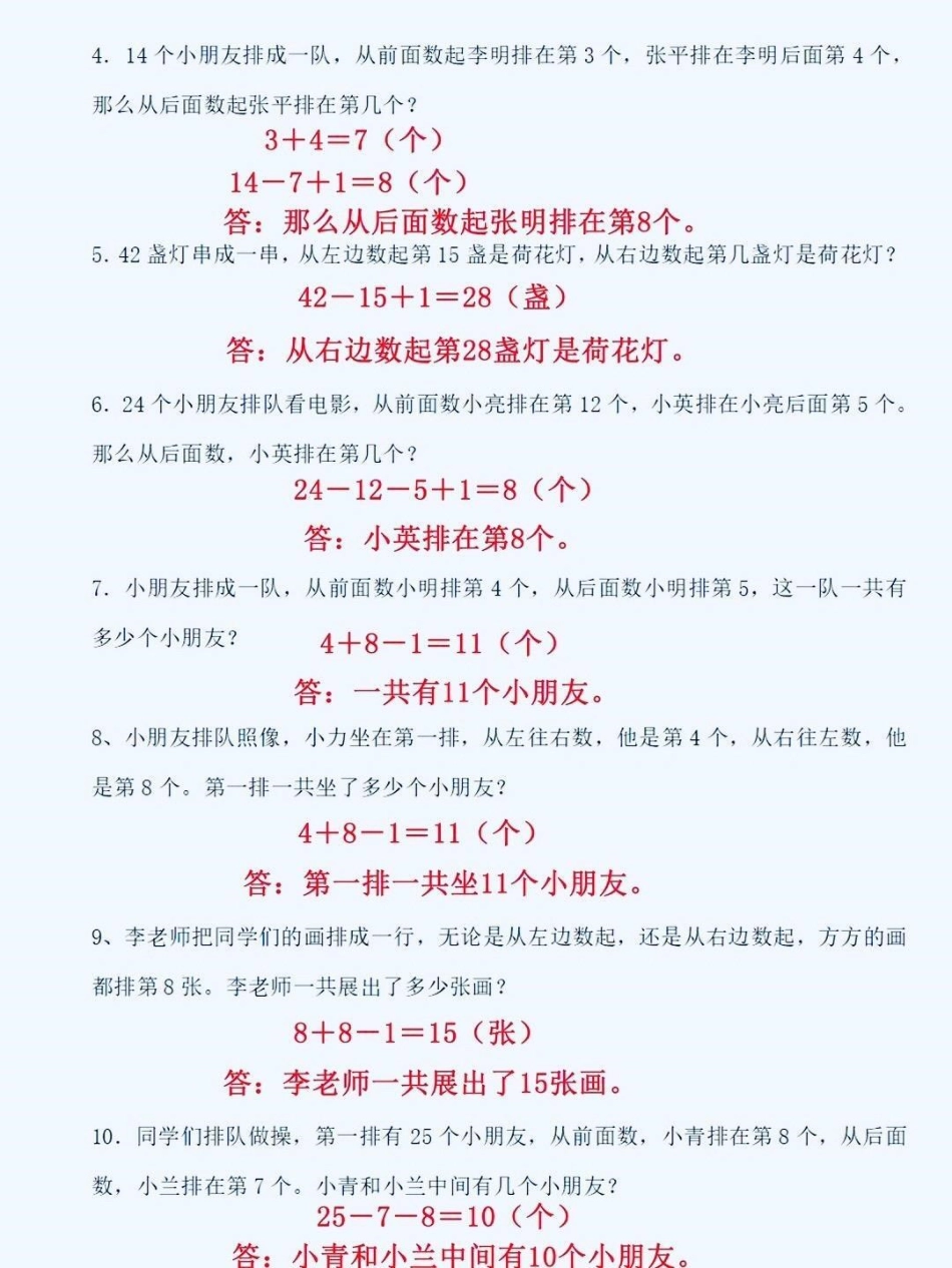 一年级数学上册排队应用题。一年级上册数学排队问题应用题,期末复习专项!排队问题 排队问题易错题 期末复习 期末考试 一年级数学.pdf