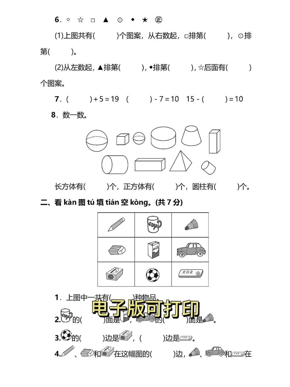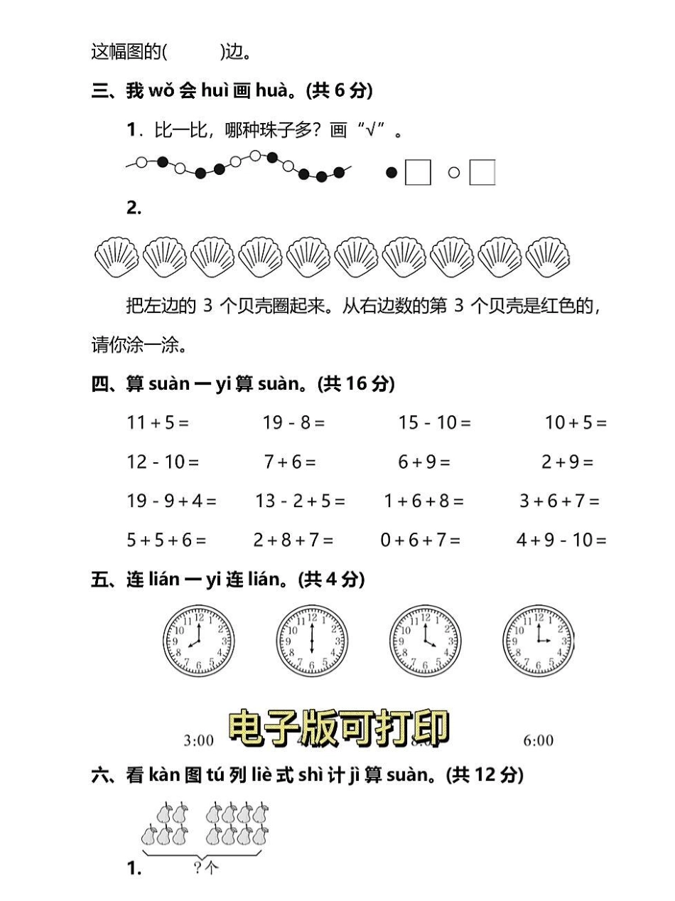 一年级数学上册期末模拟检测卷。一年级数学上册期末模拟检测卷,期末总复习,给孩子打印出来练习练习还有一个星期,期末考试了,让孩子多见题型考试不丢分期末测试卷 必刷题 一年级数学题.pdf_第1页