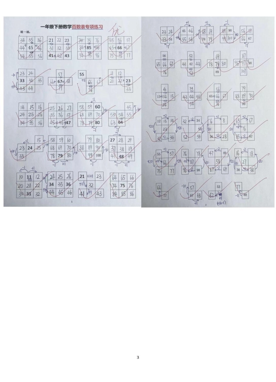一年级下册百数表专项练习。一年级 数学 学习 百数表 百数表专项练习.pdf_第3页