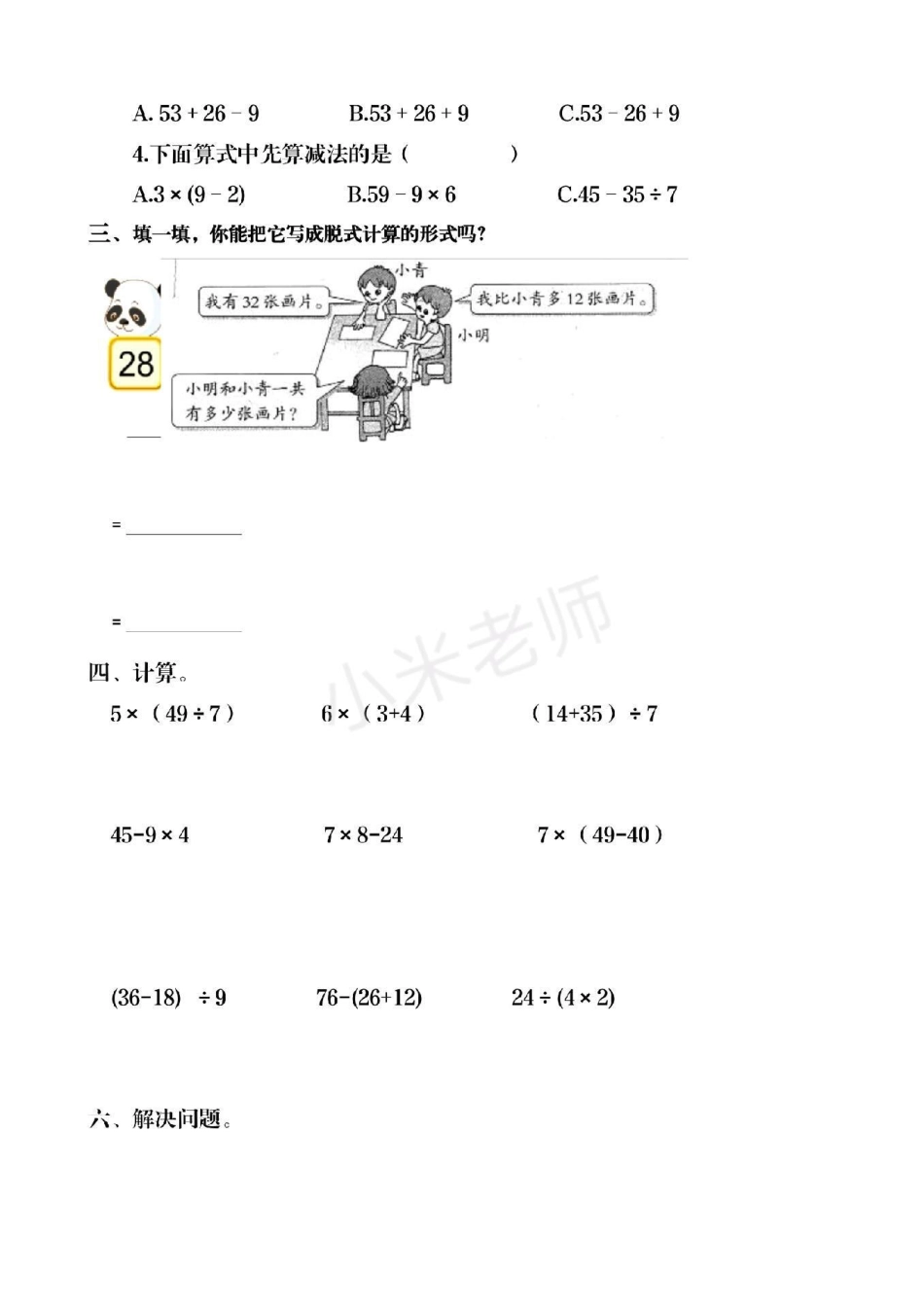 二年级下册数学 第五单元测试家长为孩子保存,可以打印练习.pdf_第3页