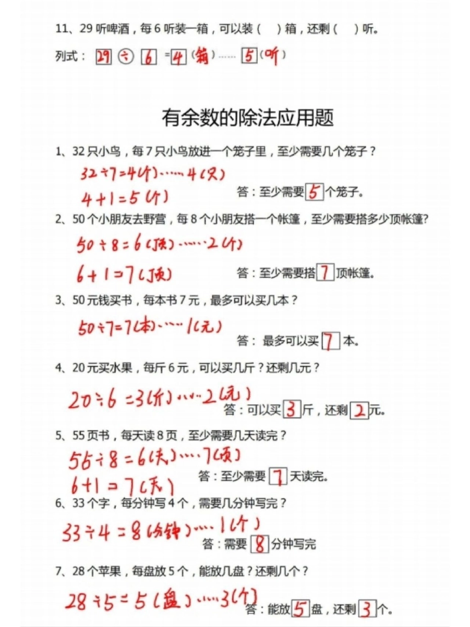 二年级下册数学有余数的除法应用题专项练习 教育 学习 知识点总结.pdf