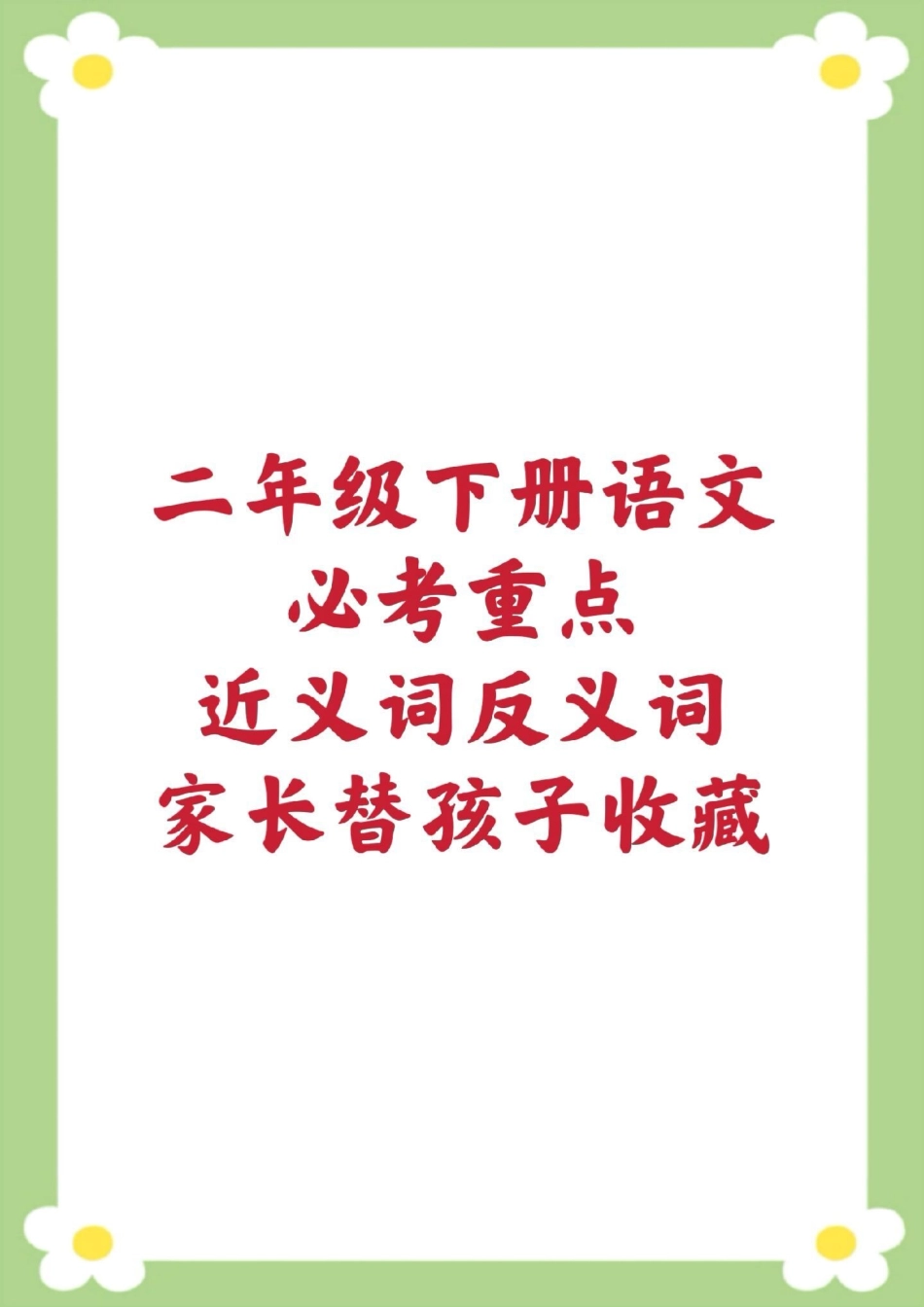 二年级下册语文。二年级语文 近义词反义词 必考考点 小学语文重点知识课堂笔记 开学季 寒假作业 寒假预习.pdf