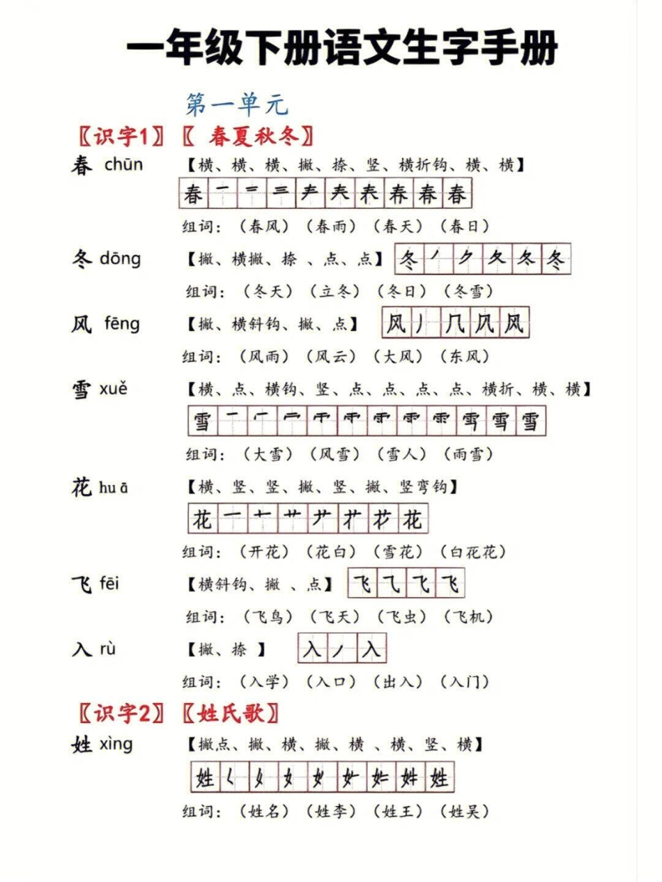 一年级下册语文生字表笔顺 教育 学习 知识点总结.pdf