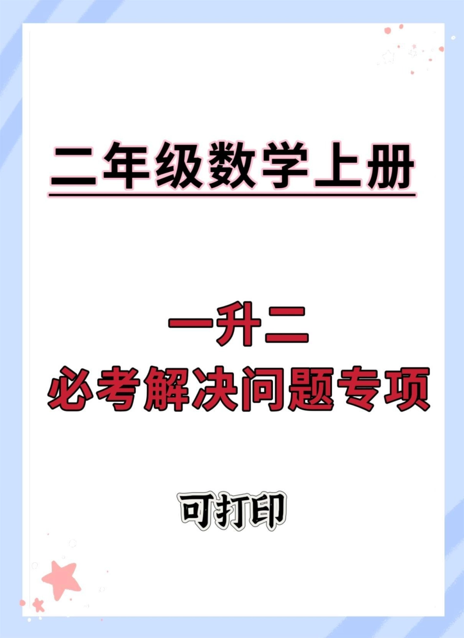 一升二数学必考解决问题专项。一升二 数学思维 数学 暑假预习 暑假.pdf