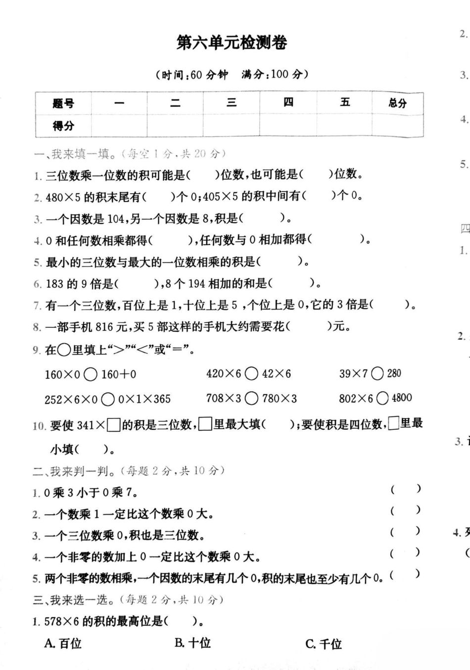 三年级上册第六单元测试卷单元测试卷 小学数学.pdf_第3页