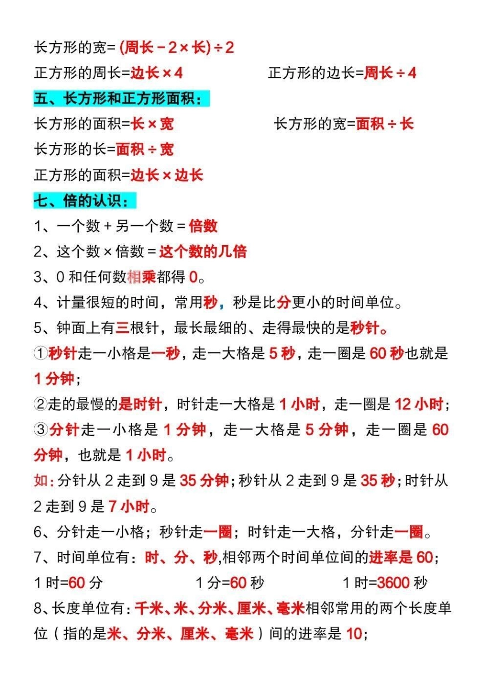 三年级上册数学必背公式汇总。三年级上册数学必背公式汇总,家长一定要让孩子在理解的基础上背熟,背熟才会运用。很多孩子知道怎么做题,但公式不记得或是记错了,这比不会做还气人,所以家长们收藏起来,也可打印出.pdf_第3页