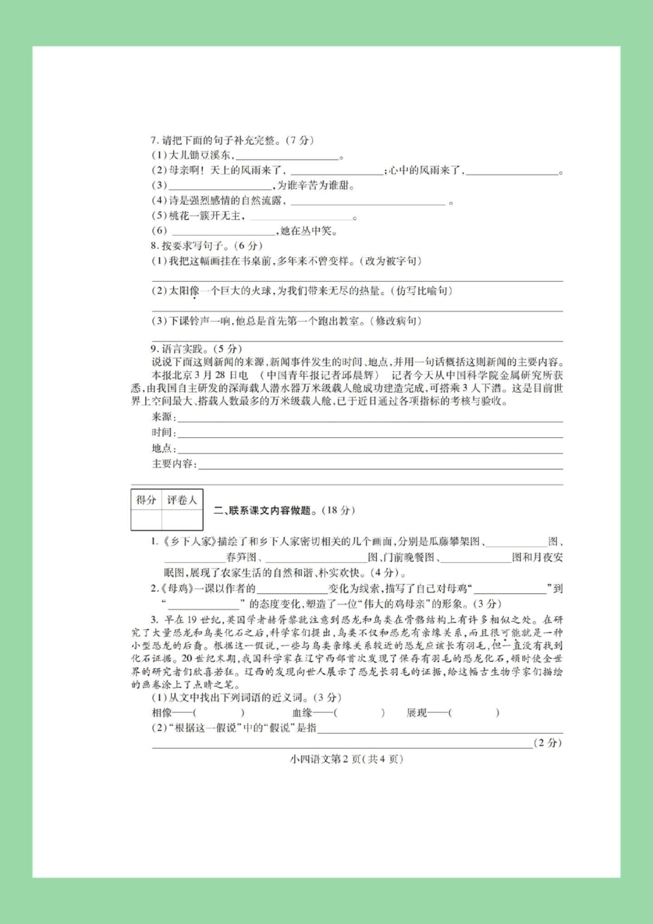 必考考点 期中考试 四年级语文 家长为孩子保存练习可打印.pdf_第2页