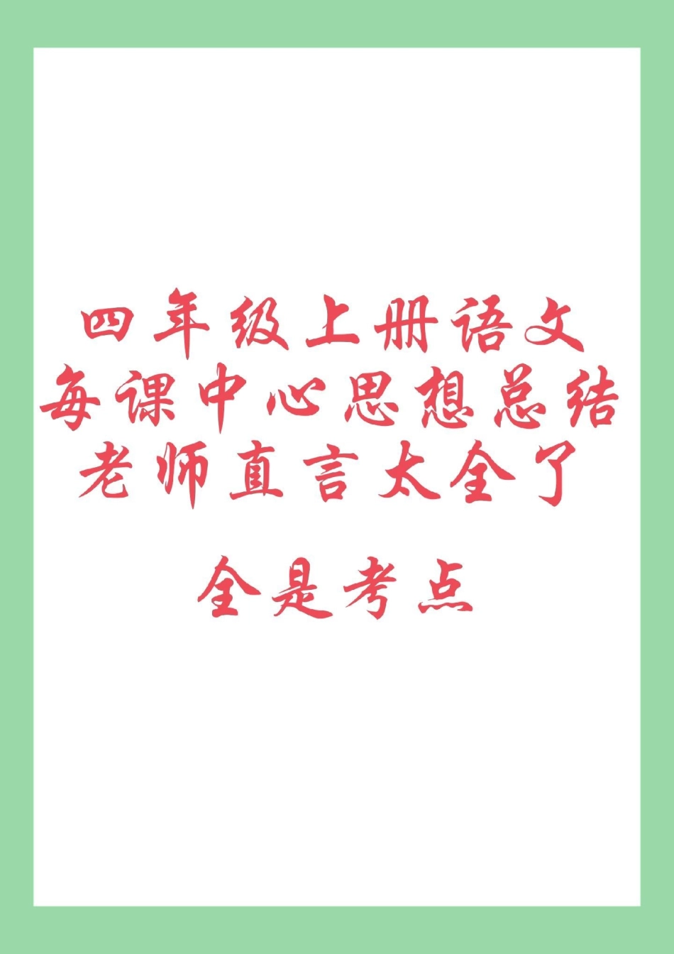 学习资料分享 暑假预习 四年级语文 中心思想 家长为孩子保存学习可打印.pdf