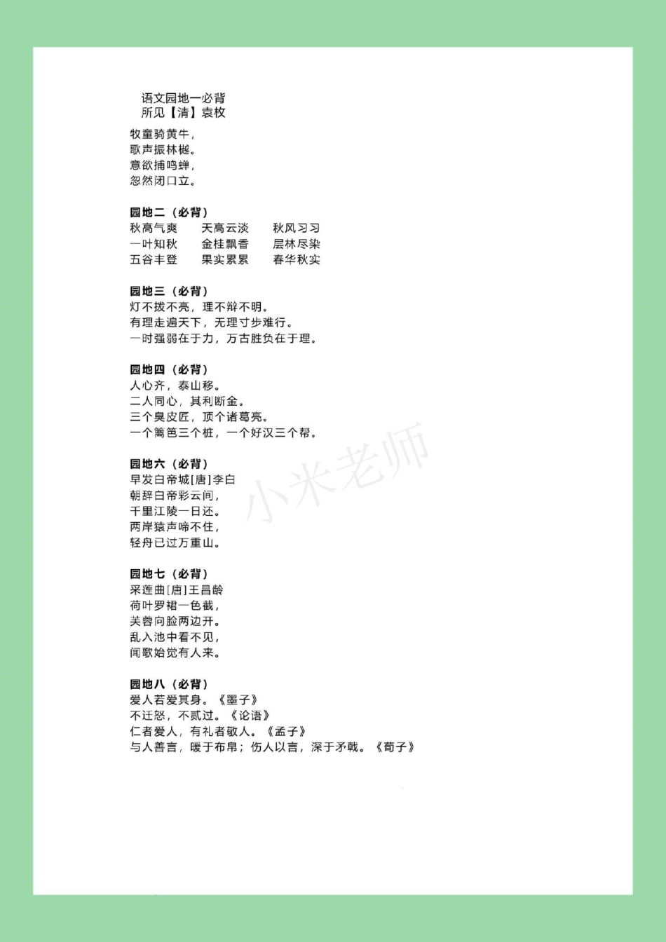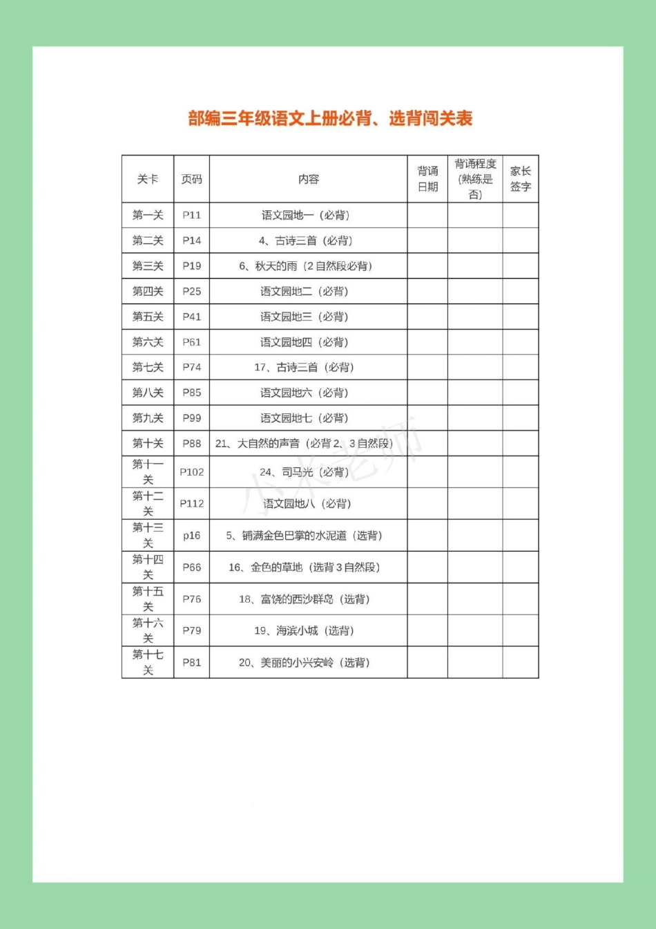 暑假计划 三年级语文 必背内容 家长为孩子保存背一背.pdf