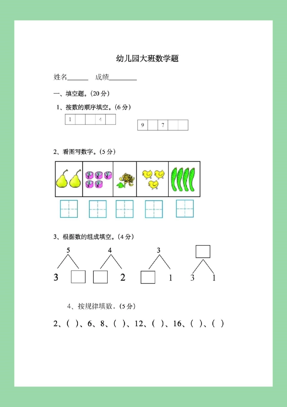 暑假作业 数学 幼小衔接 幼儿园大班数学练习题,家长为孩子保存练习.pdf