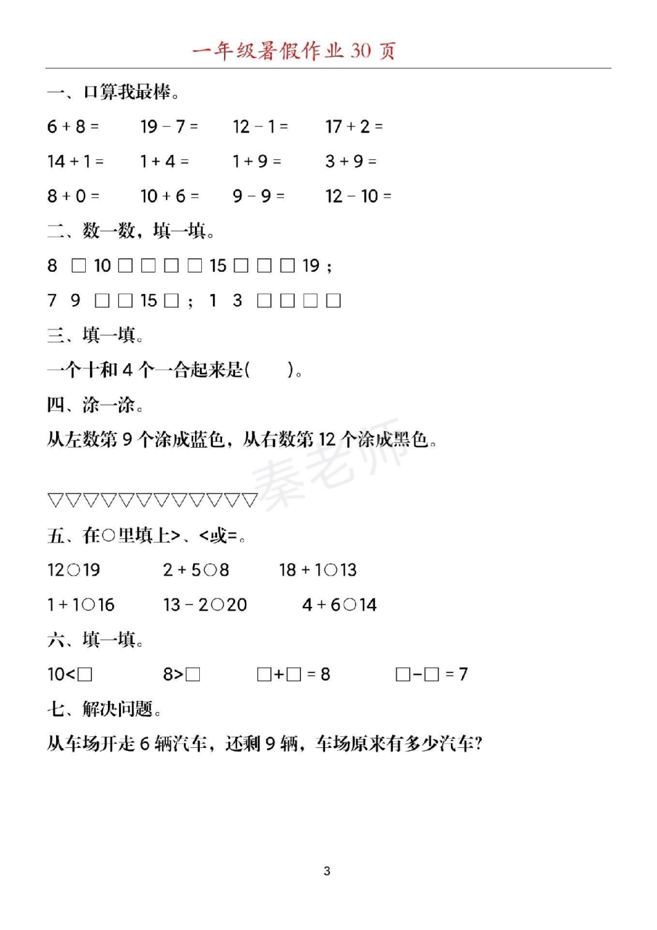 幼儿园大班数学题幼小衔接一年级数学暑假作业应用题 思维训练附加题 口算题 期末考试必考易错题.pdf_第3页