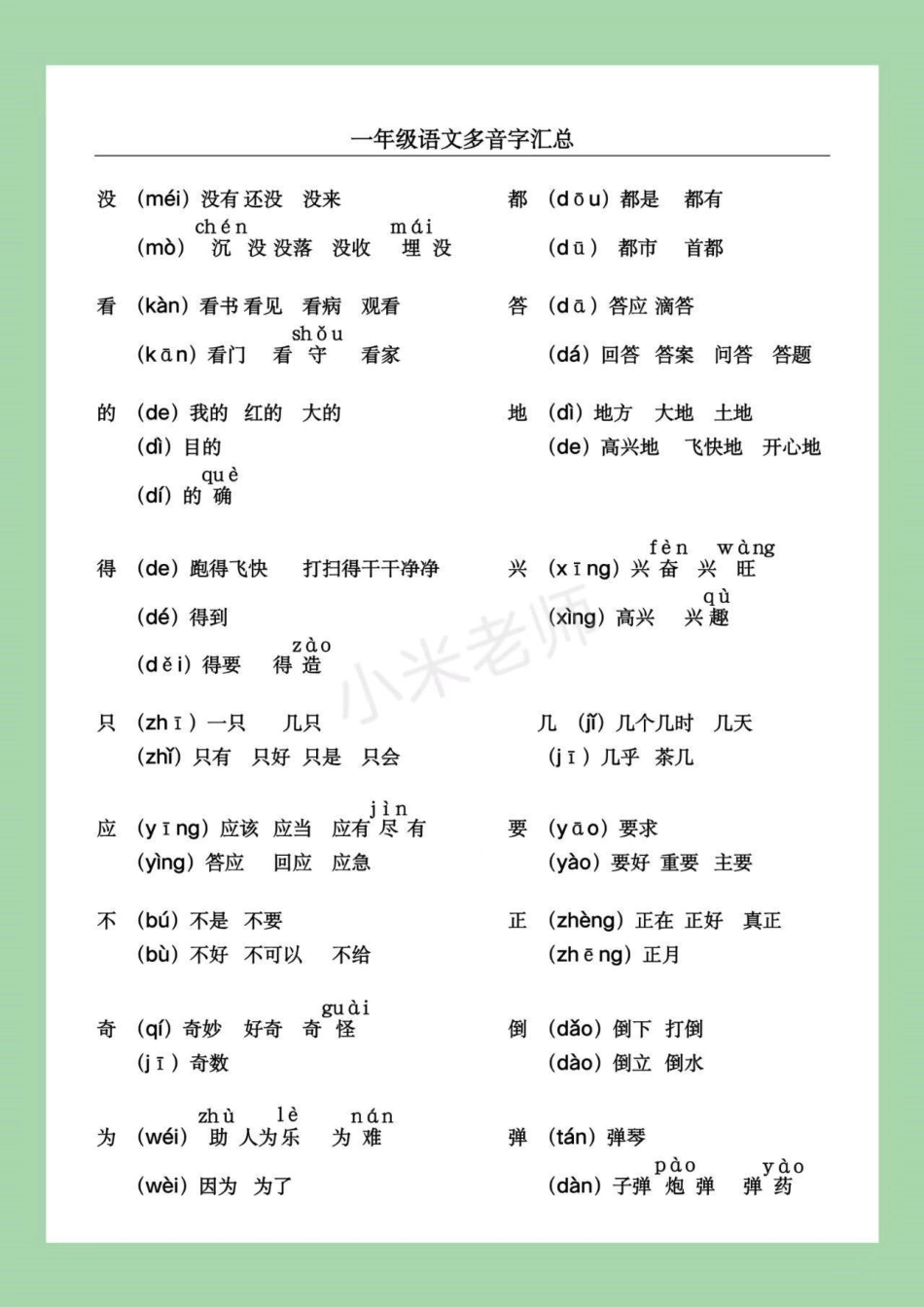 幼小衔接 一年级 多音字 家长为孩子保存下来练习吧!.pdf