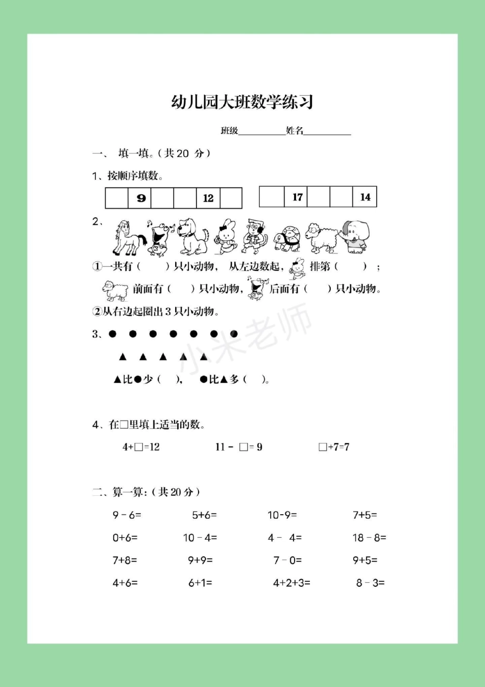 幼小衔接 幼儿园大班 数学 家长们为孩子保存下来练习吧!.pdf_第1页