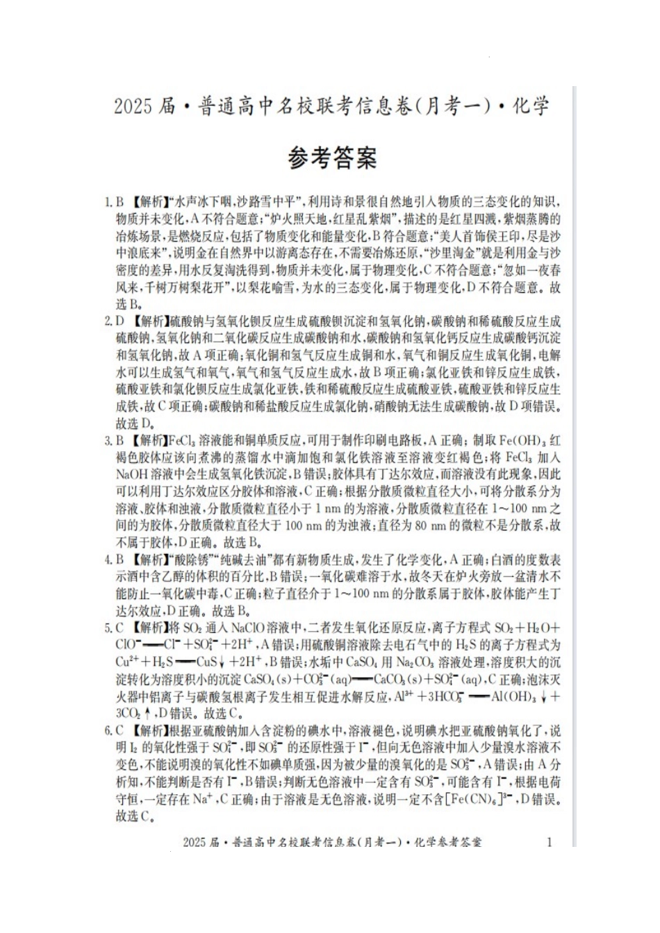 湖南省娄底市名校联考11月信息卷(月考一)化学答案.docx