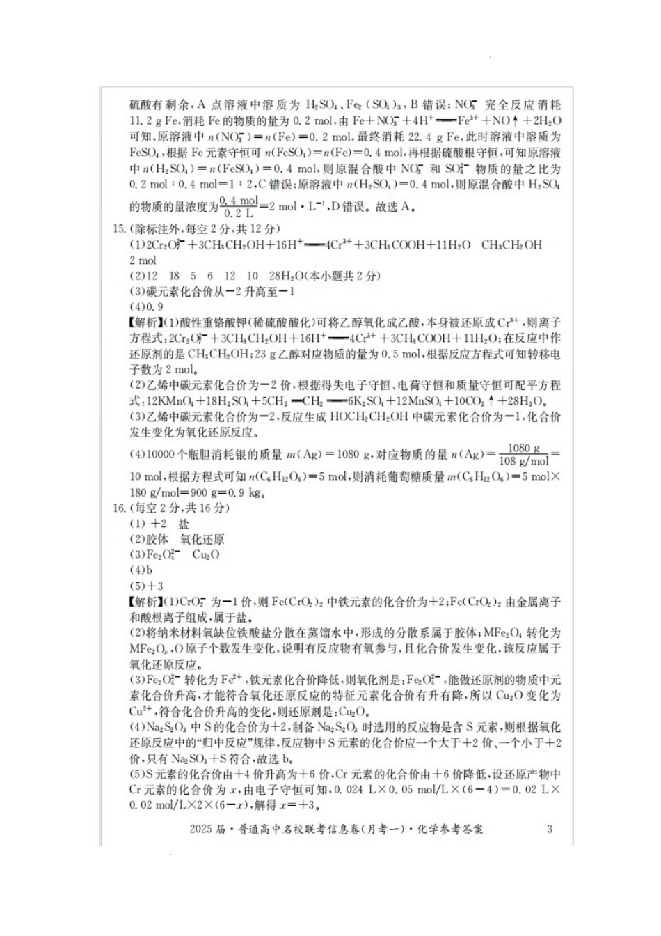 湖南省娄底市名校联考11月信息卷(月考一)化学答案.docx_第3页