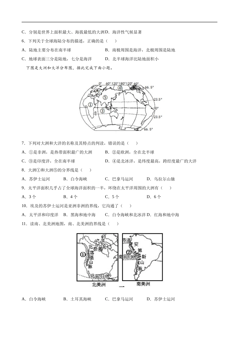 【七年级上册地理】2.1大洲和大洋-课后培优练(人教版)(原卷版).docx_第2页