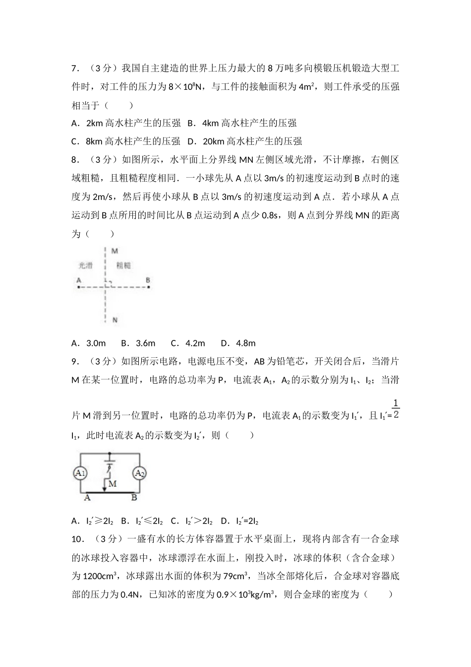 2017年新疆乌鲁木齐市中考物理试卷.docx_第3页