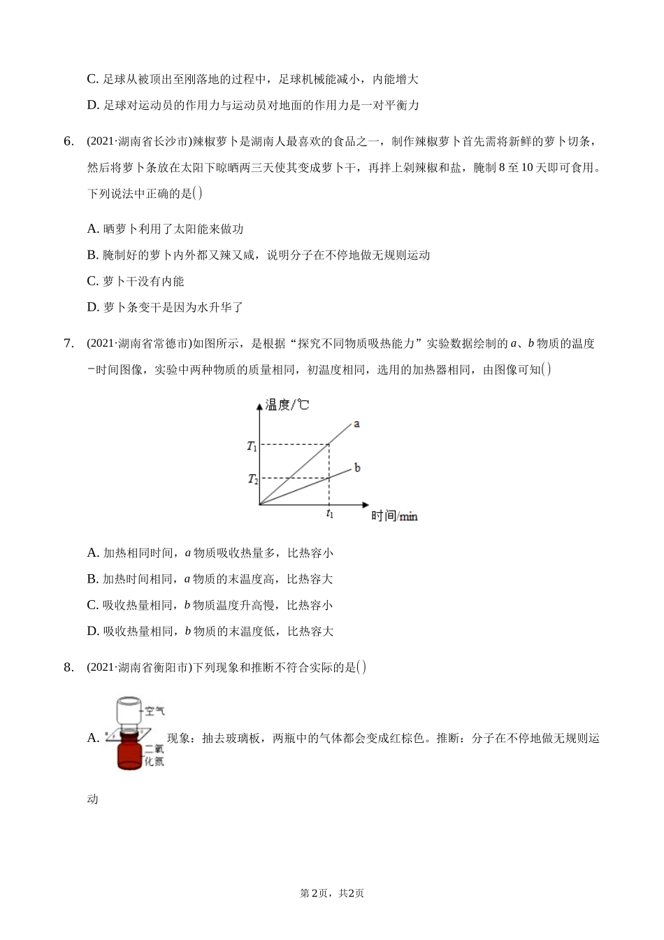 2021年全国物理中考题分类汇编13—《内能》.docx_第2页