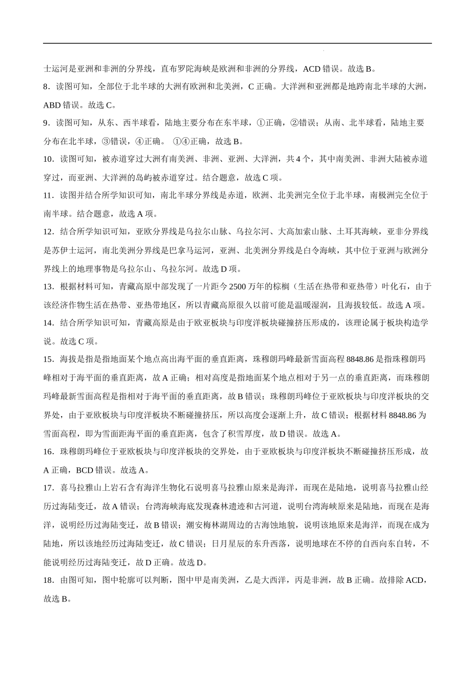 2022年全国名校七年级单元测试仿真卷·地理卷(三)第二章陆地和海洋基础过关全解全析【答案速查】一、选择题:本题共25小题,每小题2分,共50分。12345678910DCBCDBBCBC11121314151617181920ADACAADBDA212223242...