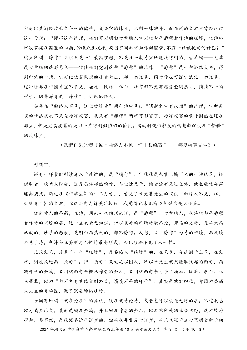2024年湖北云学部分重点高中联盟高三年级10月联考语文试题含答案.pdf_第2页