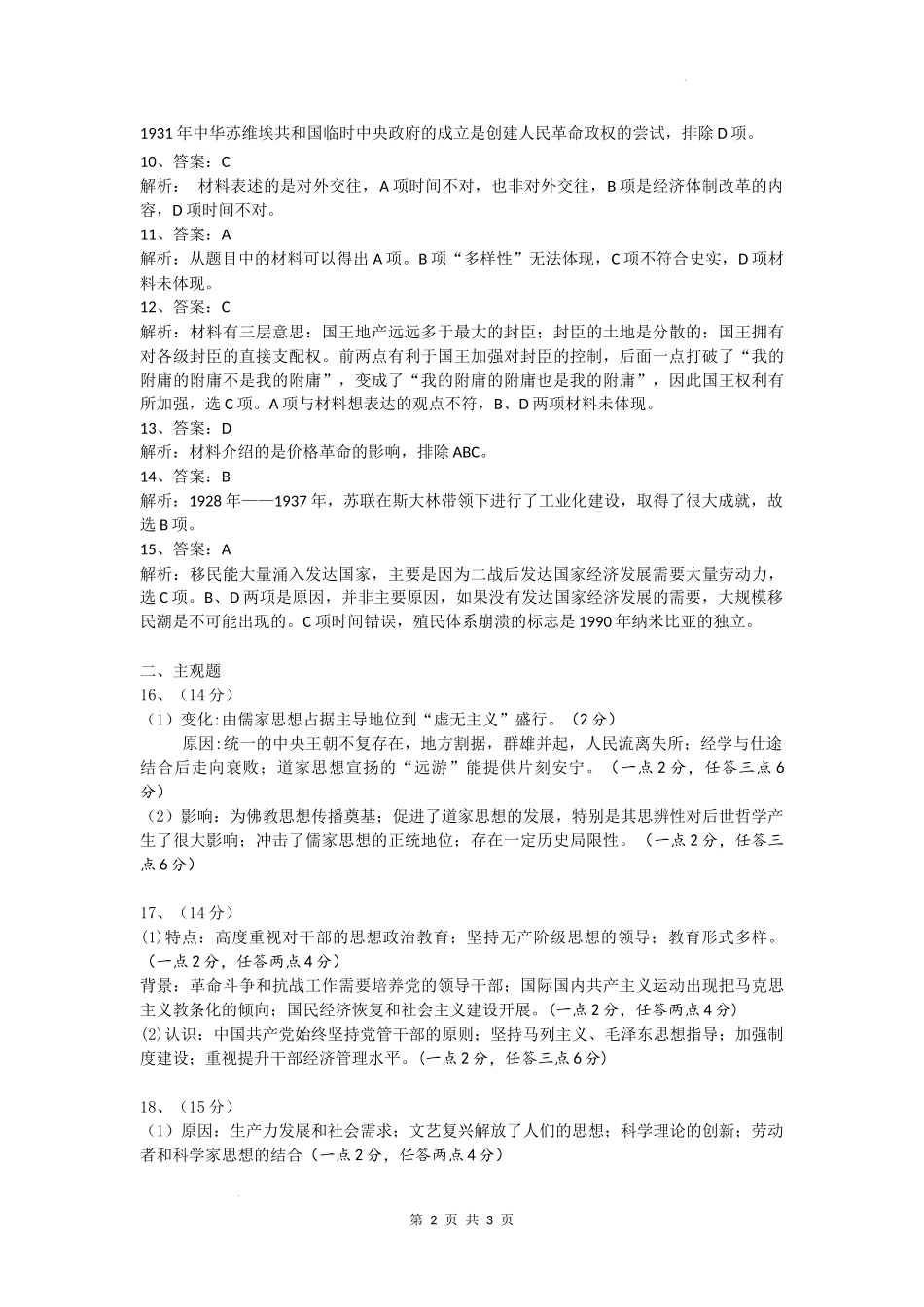 第1页共3页期中联考历史试题参考答案及评分细则一、选择题(3*15=45分)题号12345678答案CBCBAACA题号9101112131415答案BCACDBA1、答案:C解析:A项并非材料主旨。B项“阶级社会”一般以生产资料的私有社会分化和...