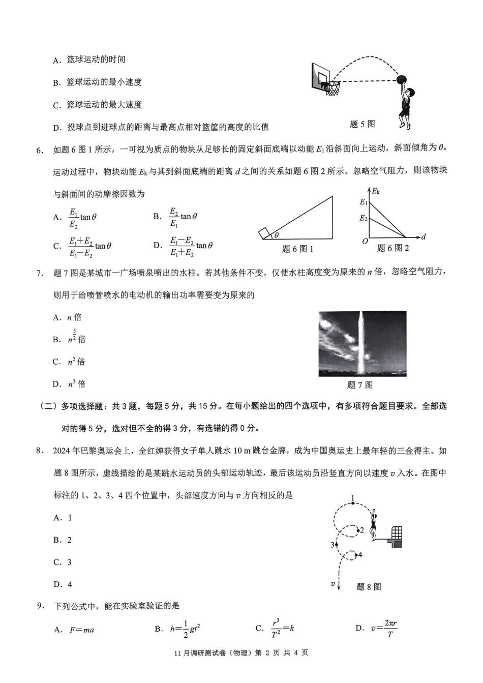 2025届重庆高三11月半期考试(康德零诊)物理含答案.pdf_第2页