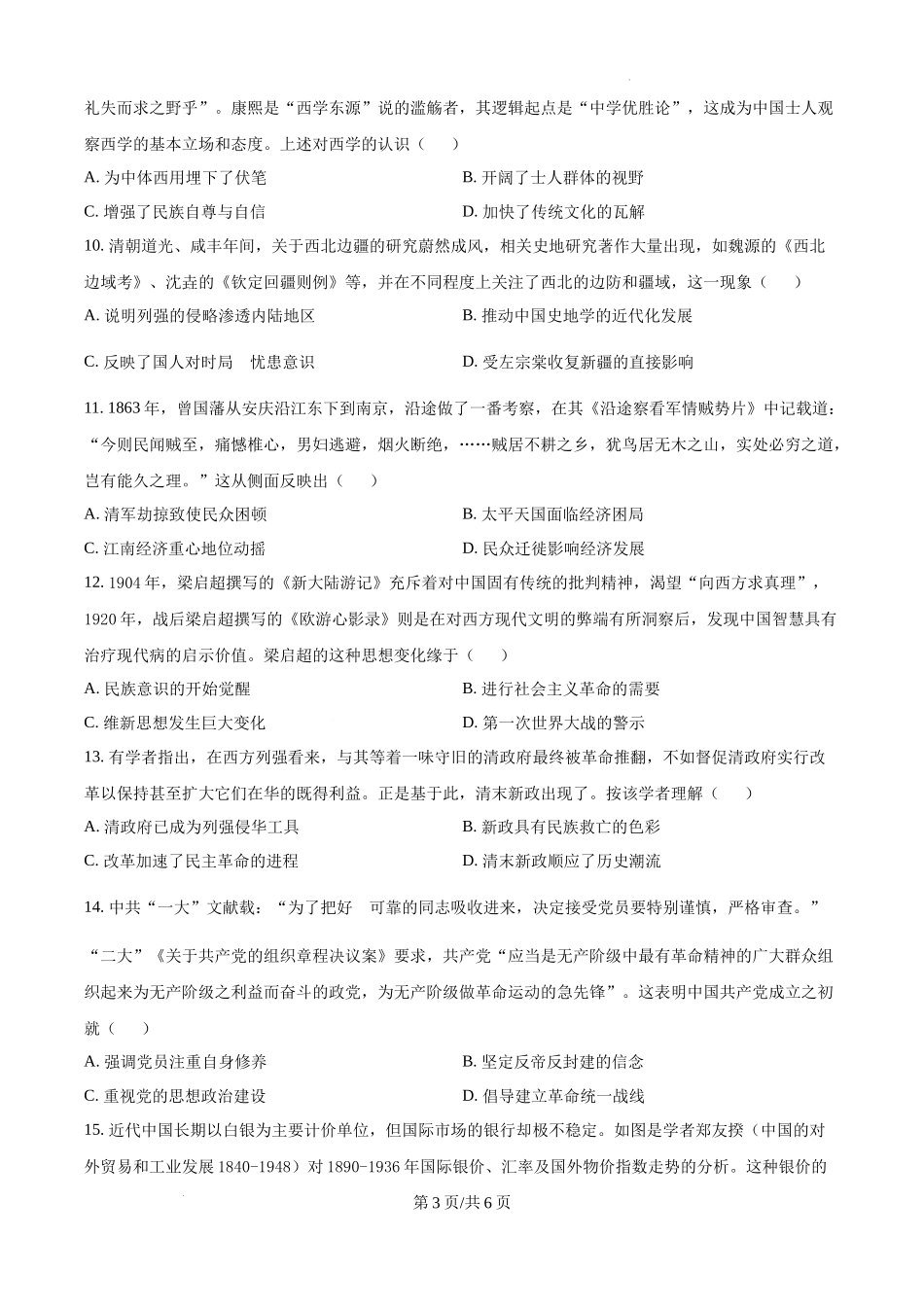 安徽省六安市第二中学2024-2025学年高三上学期10月月考历史.docx_第3页