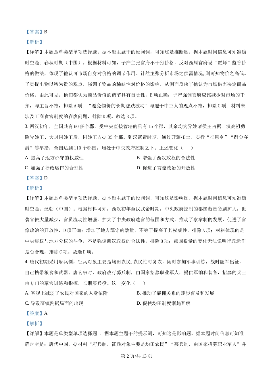 安徽省六安市第二中学2024-2025学年高三上学期10月月考历史答案.docx_第2页