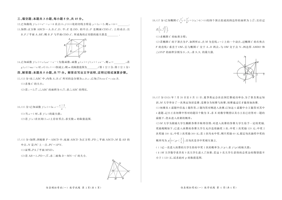百师联盟2025届高三上学期仿真模拟(一) 数学含解析.pdf_第3页