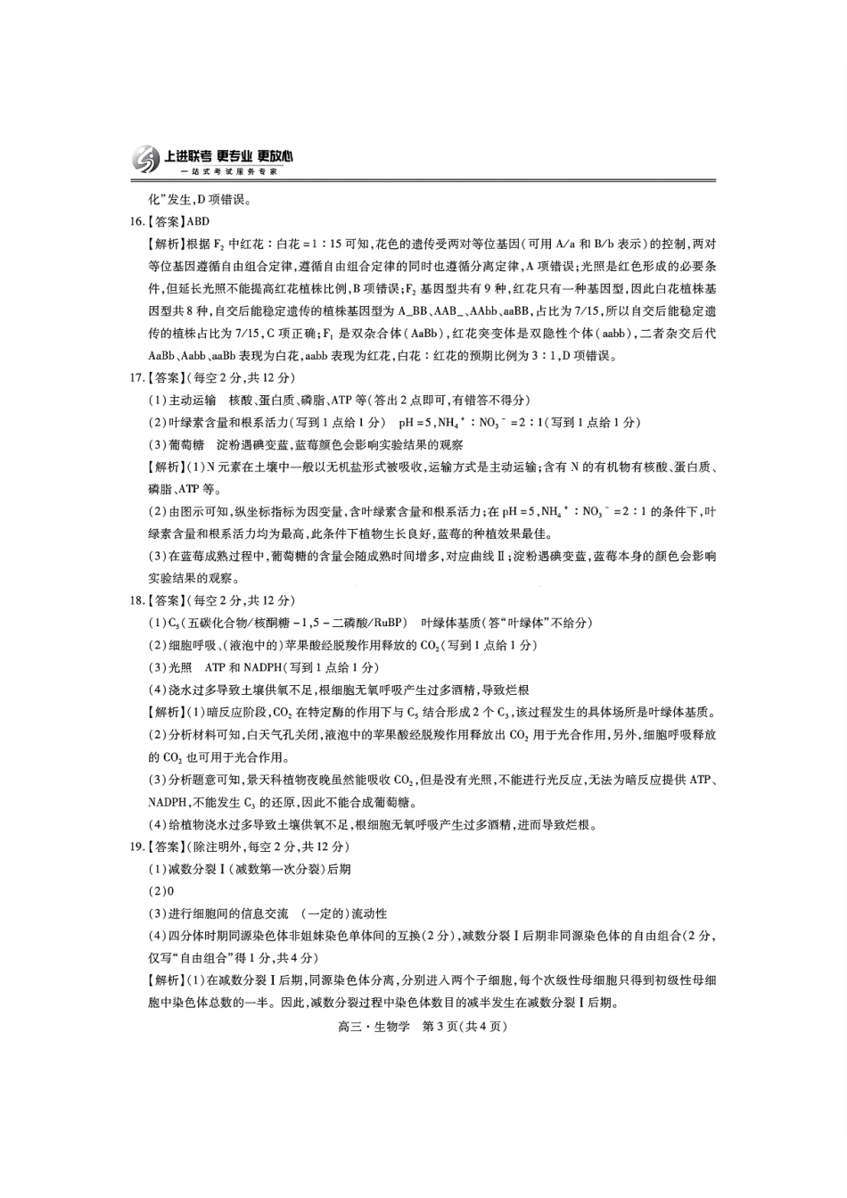 江西省多校联考2024-2025学年高三上学期期中考试生物答案.pdf_第3页