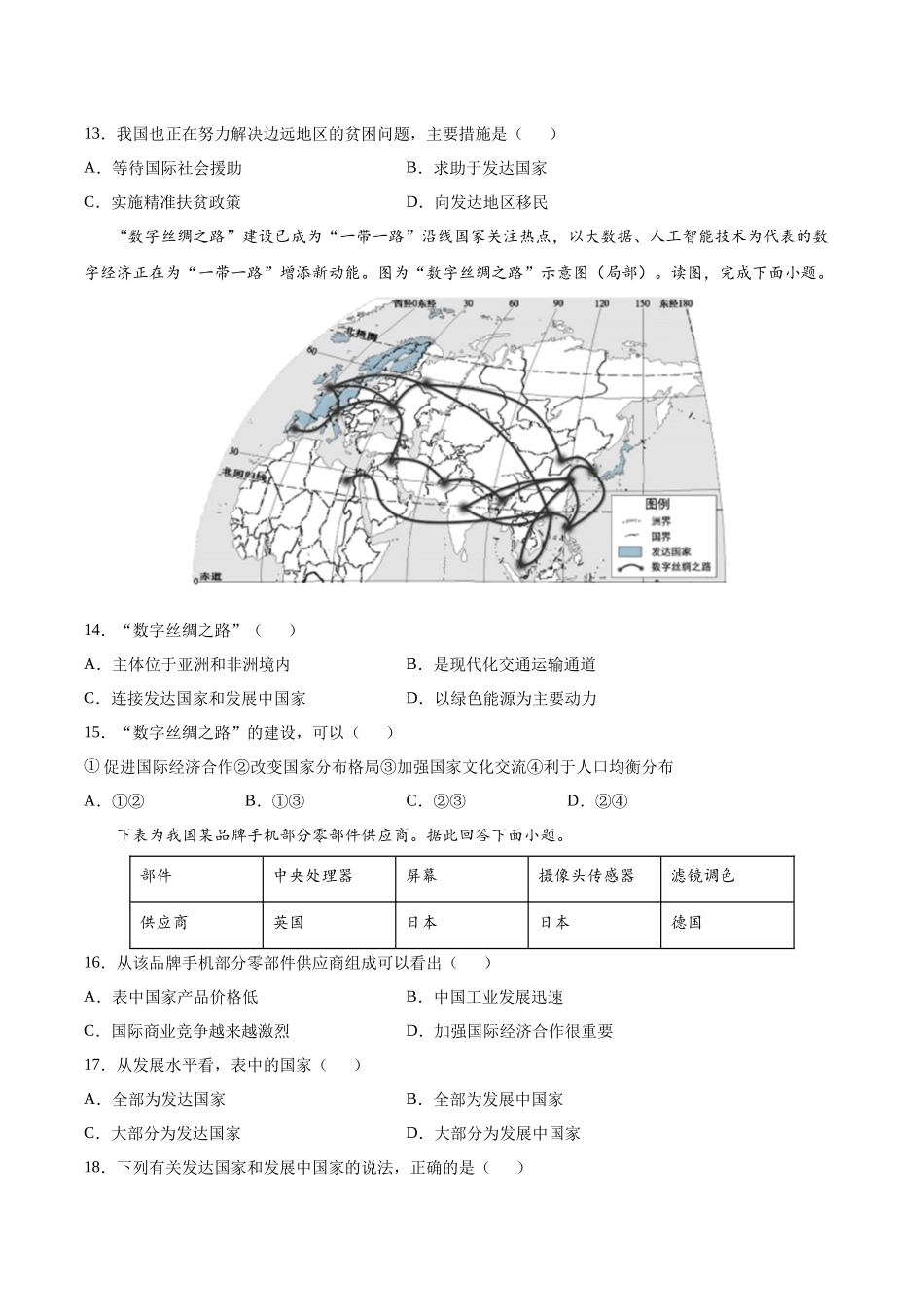 第五章 发展与合作(B卷提升能力)-七年级地理上册同步单元AB卷(人教版)(原卷版).docx_第3页