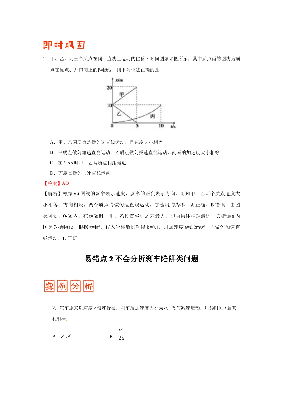模块一质点的直线运动易错点1对运动图像的物理意义理解不透彻1.某物体做直线运动的v–t图象如图所示。则关于物体在前8s内的运动,下列说法正确的是A.物体在第4s末改变运动方向B.0~4s内的加速度大于6~8s内的加速...