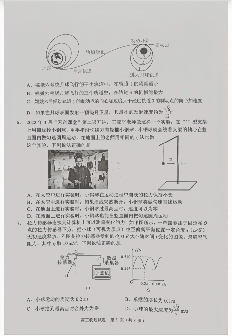 广东省佛山市2024学年顺德区普通高中高三教学质量检测(一)物理试卷+参考答案.pdf_第3页