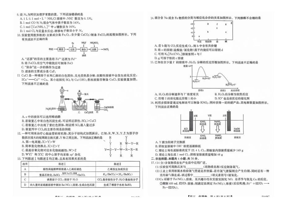 广东省清远市2024-2025学年高三上学期第一次模拟考试化学试题.docx_第3页