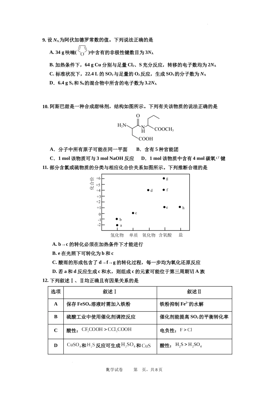 广东省深圳市福田区红岭中学2024-2025学年高三上学期第二次统一考试化学.docx_第3页