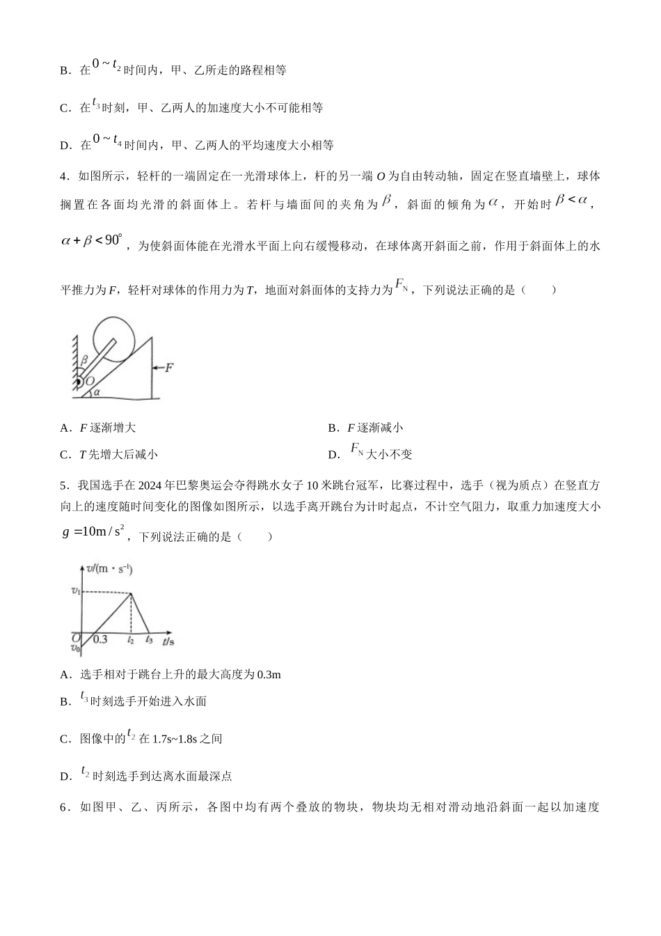 2024—2025年度河南省高三年级联考(二)物理本试卷满分100分,考试用时75分钟。注意事项:1.答题前,考生务必将自己的姓名、考生号、考场号、座位号填写在答题卡上。2.回答选择题时,选出每小题答案后,用铅笔...
