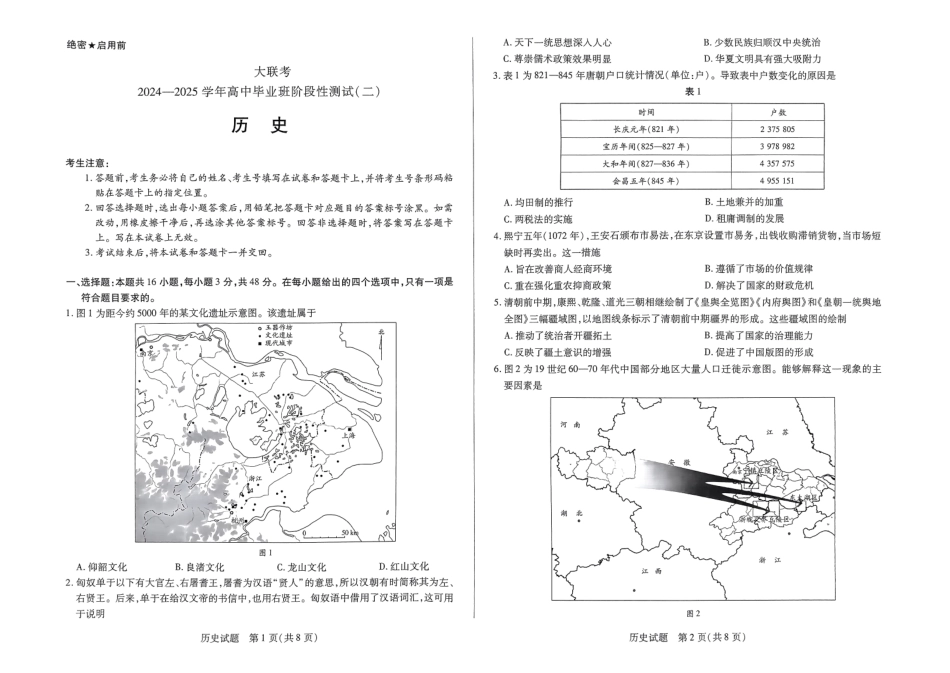 河南省天一大联考2024-2025学年高三上学期阶段性检测(二)历史试题.pdf_第2页