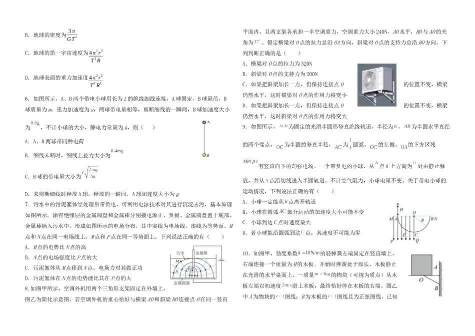 大庆实验中学实验二部2022级高三上学期10月考试物理学科试题说明:1.请将答案填涂在答题卡的指定区域内。2.满分100分,考试时间75分钟。一、选择题(1-7为单选题,每题4分,8-10为多选题,每题6分,共46分)1.关...