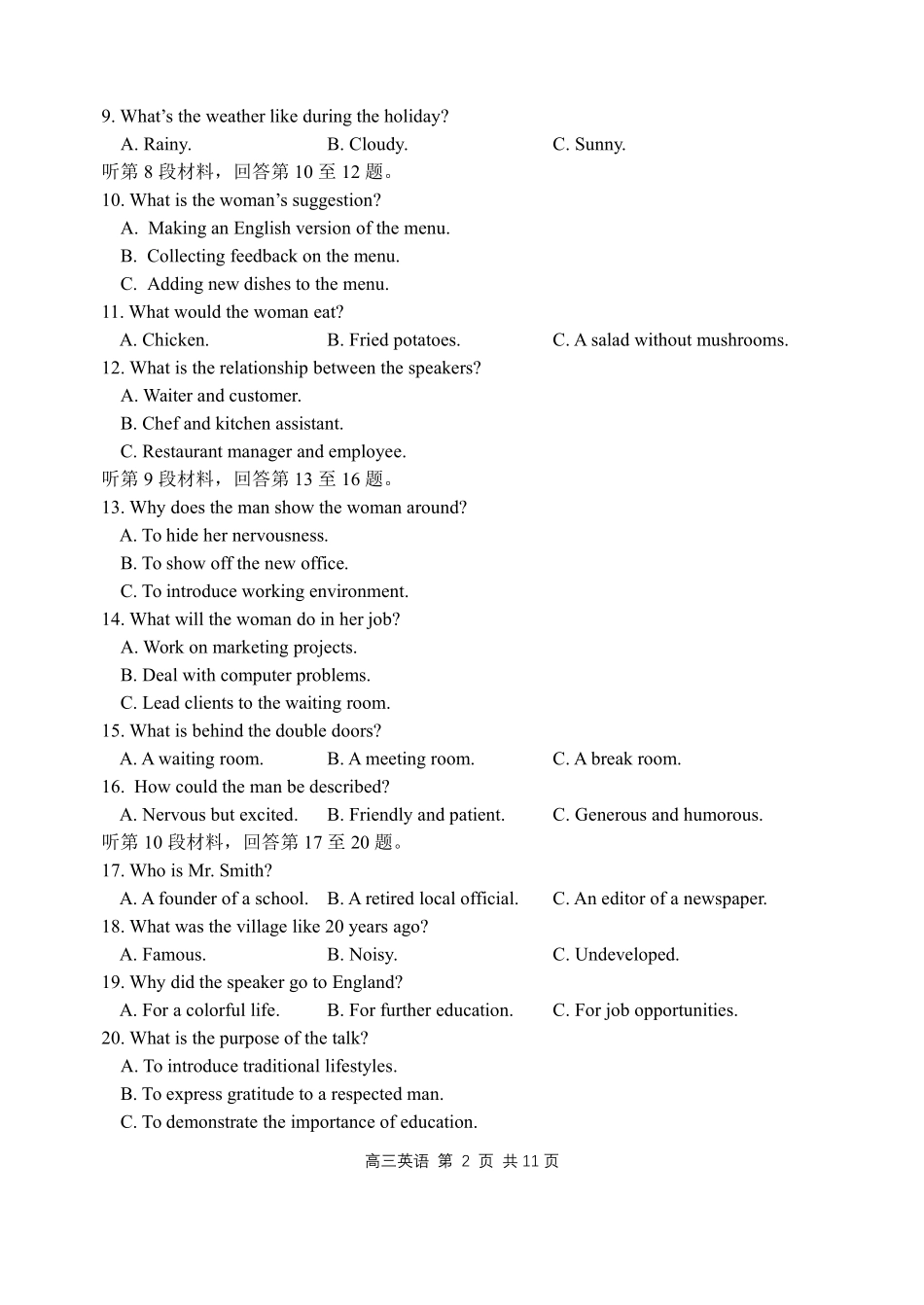 黑龙江省哈尔滨市第三中学2024-2025学年高三上学期10月月考英语试卷.pdf_第2页