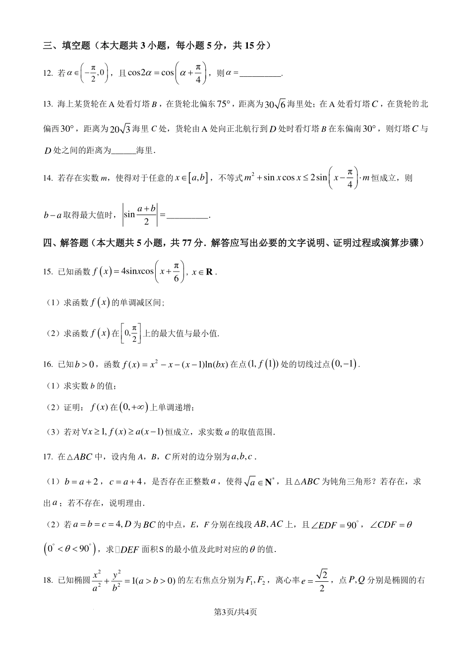湖北华中师范大学第一附属中学2025届高三上学期十月月度检测数学试卷(原卷版).pdf_第3页